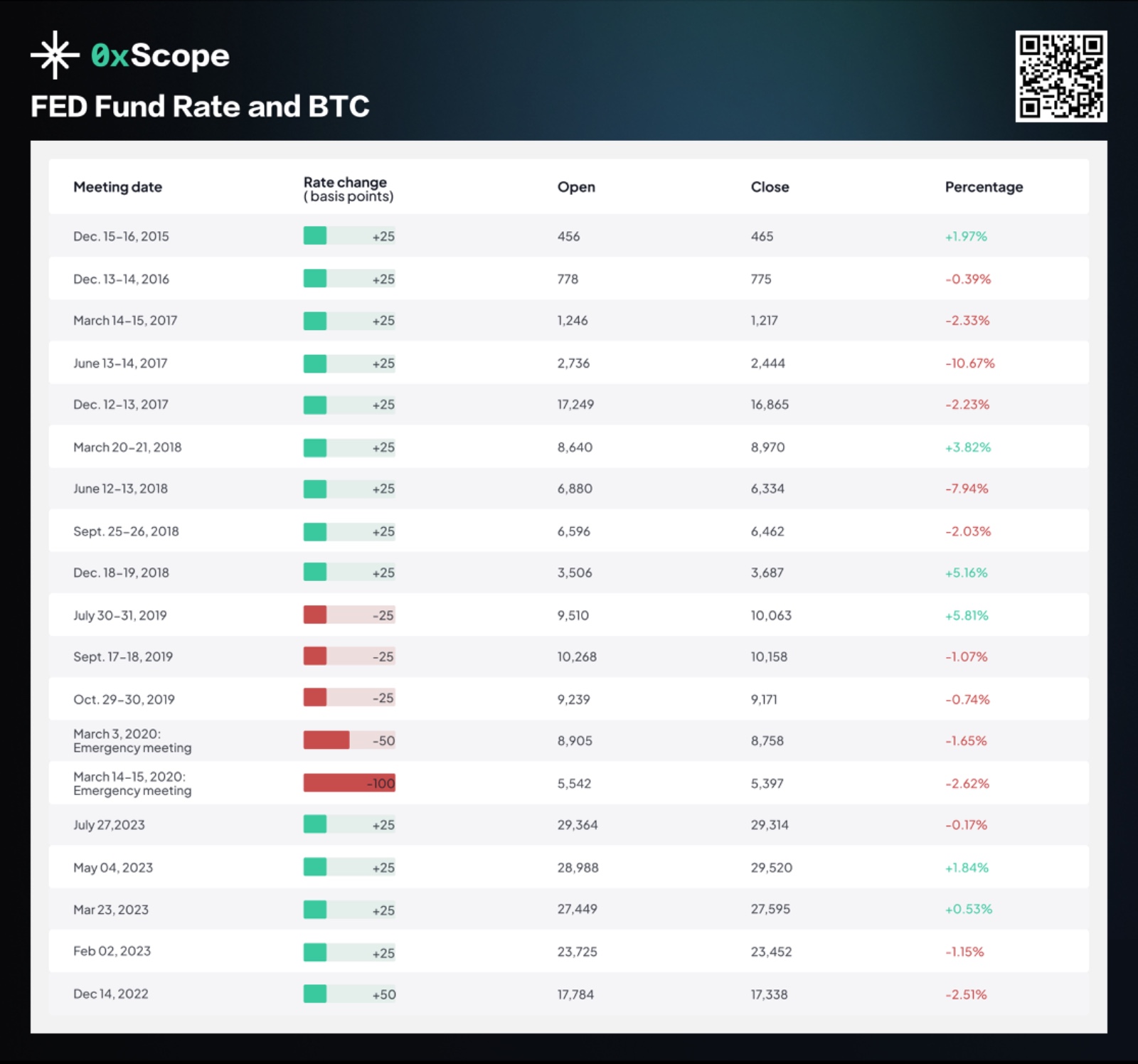 İşte Scopechat’in son Fed faiz oranı değişikliğinin Bitcoin’in piyasa temelleri üzerindeki etkisine ilişkin en son verileri: